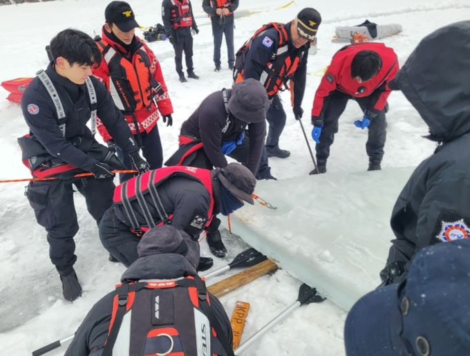 주요 훈련 내용으로는 구조대원 현장안전관리 이론 교육, 겨울철 빙판용 구조썰매 구조 기법, 수난사고 인명 탐색 및 인양법 훈련 등 재난현장표준작전절차(SOP)에 따라 실제 상황에 적용할 수 있는 전문적인 훈련을 실시했다.