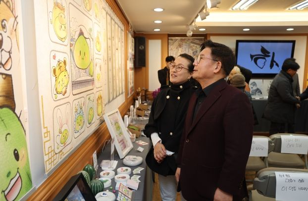 [경남도민뉴스=김완호 기자] 박강수 마포구청장은 2025년 2월 12일 15시에 성림사 미담갤러리에서 여는 첫 전시인 '5두방전'의 개회식에 참여해 축사하고 전시된 작품을 관람했다.