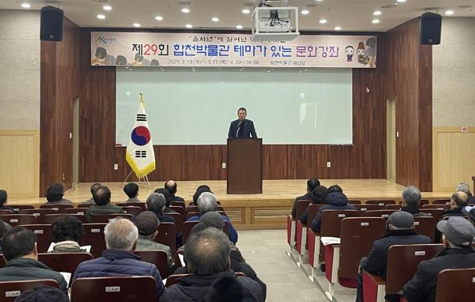 [경남도민뉴스=김춘호 기자] 합천군은 13일 합천박물관 대강당에서 장재혁 합천부군수, 정봉훈 군의회 의장, 이태련 군의회 의원, 수강생 100여 명이 참석한 가운데 ‘제29회 테마가 있는 문화강좌’ 개강식을 열고 본격적인 교육을 시작했다고 밝혔다.