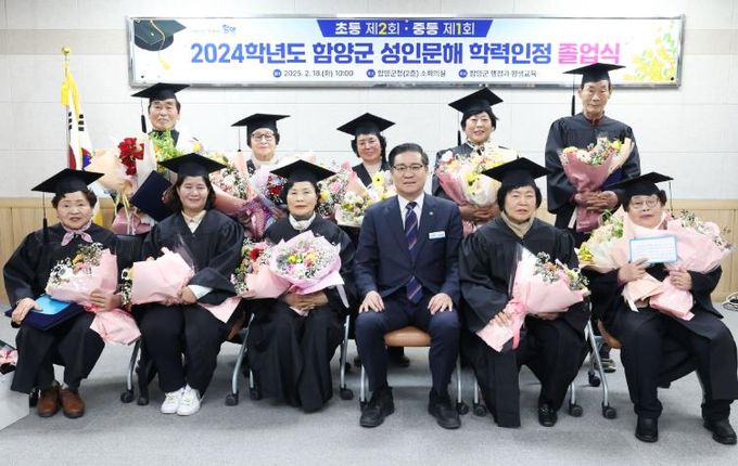 졸업을 축하하기 위해 참석한 진병영 군수는 “배움의 기회를 놓친 어르신들이 학습을 통해 새로운 꿈을 이루는 모습을 보며 깊은 감동을 받았다”며 “앞으로도 성인문해교육을 확대해 더 많은 분들이 학습의 기쁨을 누릴 수 있도록 적극 지원하겠다”고 밝혔다.