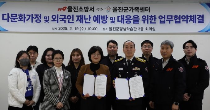 [경남도민뉴스=오창경 기자] 2월 19일, 울진군 가족센터에서 외국인과 다문화가정을 대상으로 한 소방안전 역량 강화를 위한 업무협약을 체결했다고 밝혔다.