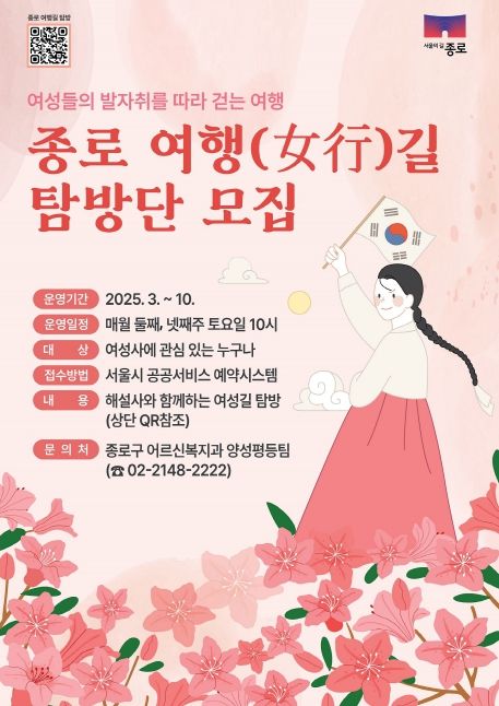 종로와 여성사에 관심 있는 누구나 2월 24일부터 서울시 공공서비스 예약을 통해 무료 신청하면 된다.