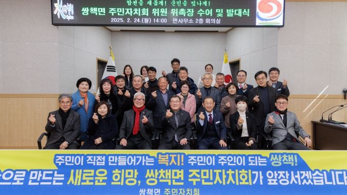 김윤철 군수는 위원들께 위촉장 전수와 함께 “제1기 주민자치회 발대식을 축하하며, 새롭게 출범하는 주민자치회 위원님들 모두가 주민들의 목소리를 귀 기울여 보다 살기 좋은 쌍책을 만들기 위해 함께 고민해 주기를 바라며, 행정에서도 주민자치회와 긴밀히 협력하여 지원을 아끼지 않겠다.”라며 출범 축하를 전했다.