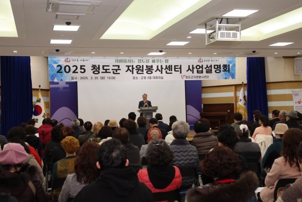 [경남도민뉴스=최민숙 기자] 청도군 자원봉사센터는 25일 청도군청 대회의실에서 김하수 청도군수, 전종율 청도군의회 의장, 관내 자원봉사단체 회원 및 운영위원 등 180여 명이 참석한 가운데 『2025년 청도군 자원봉사센터 사업설명회』를 개최했다.