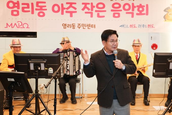 공연에 앞서 박강수 마포구청장은 “‘제1회 염리동 아주 작은 음악회’를 효도밥상 이용 어르신과 함께해서 더욱 뜻깊다”라며 “음악회를 열 수 있게 장소를 지원해주신 새로운 교회에도 진심으로 감사드린다”라고 말했다.