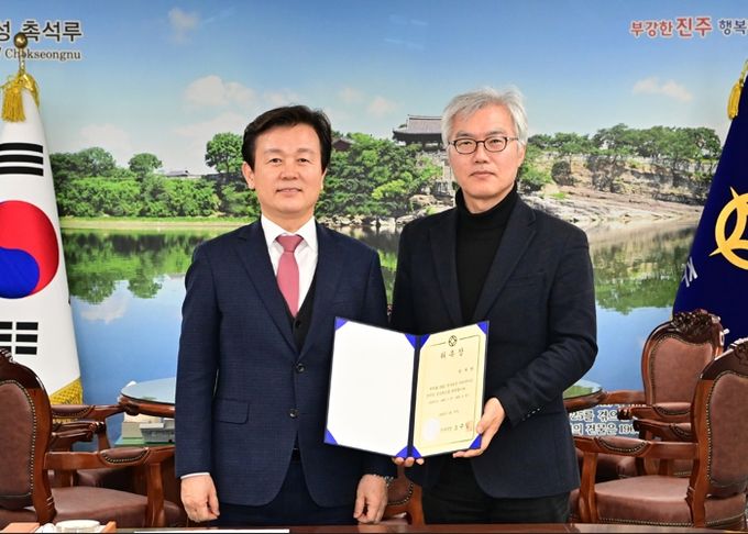 [경남도민뉴스=권중환 기자] 진주시는 ‘2025 국가유산 미디어아트 진주성’ 사업의 성공적인 추진을 위해 권재현 축제전문 감독을 총감독으로 위촉하고, 27일 시청 기업인의 방에서 위촉장을 수여했다.