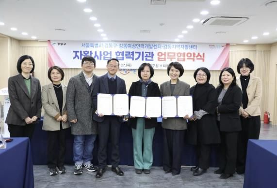 [경남도민뉴스=김완호 기자] 강동구는 지난 27일 취약계층 일자리 제공 및 취업 지원 확대를 위해 강동여성인력개발센터, 강동지역자활센터와 3자 업무협약을 체결했다고 밝혔다.