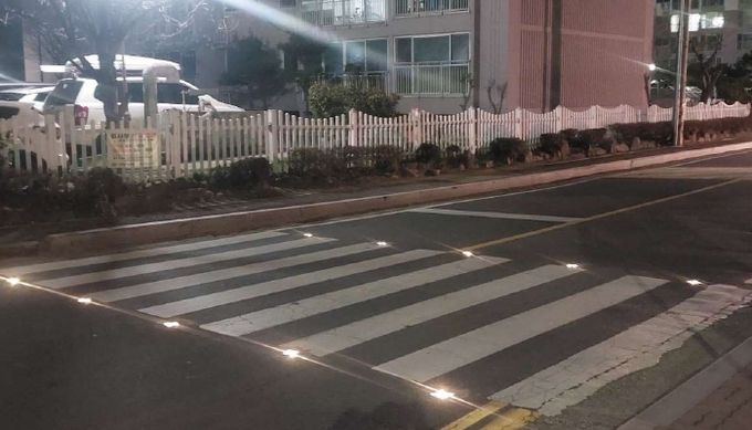 이번 사업은 보행자 교통사고 예방을 목표로, 횡단보도 가장자리에 일정한 간격으로 설치된 함몰형 LED 조명시설을 통해 운전자가 횡단보도를 쉽게 인식할 수 있도록 돕는다.