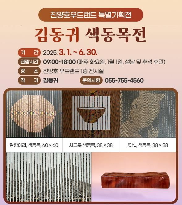 [경남도민뉴스=권중환 기자] 진주시는 진양호공원 내 ‘진양호 우드랜드’에서 3월부터 6월까지 4개월간 특별 전시회인 ‘김동귀 색동목전’을 개최한다.