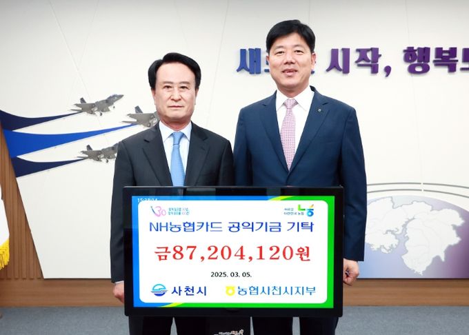 [경남도민뉴스=변정형 기자] 사천시는 NH농협 사천시지부로부터 제휴카드 적립기금 8720만 4102원을 전달받았다고 5일 밝혔다.