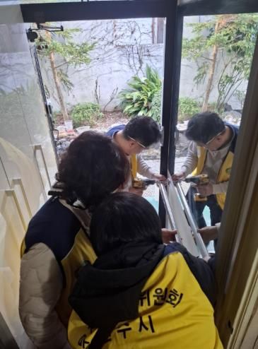 [경남도민뉴스=권중환 기자] 무장애도시 상봉동위원회는 6일 거동이 불편한 저소득 중증장애인 세대에 편의시설 설치 봉사활동을 펼쳤다.