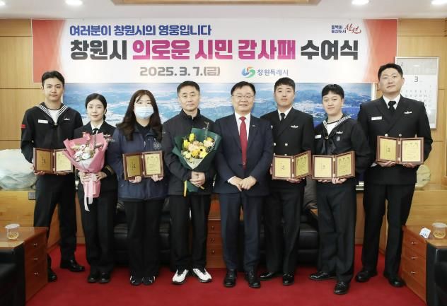 [경남도민뉴스=박민호 기자] 창원특례시는 7일 위급한 상황에서 용기있게 시민의 생명을 구하고 큰 피해를 막은 의인 6명에게 창원시민의 마음을 담아 감사패를 전달했다.