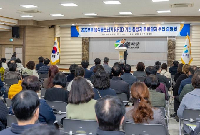 [경남도민뉴스=최민숙 기자] 칠곡군은 지난 7일 군청 강당에서 공동주택 음식물쓰레기 RFID 종량기 무료 설치사업 관련 주민설명회를 개최했다고 밝혔다.
