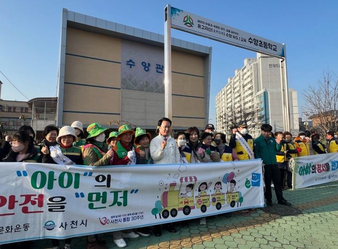 [경남도민뉴스=변정형 기자] 사천시는 학생들의 안전한 등굣길을 조성하기 위해 11일 오전 8시 수양초등학교 일원에서 등굣길 교통안전 캠페인을 실시했다.