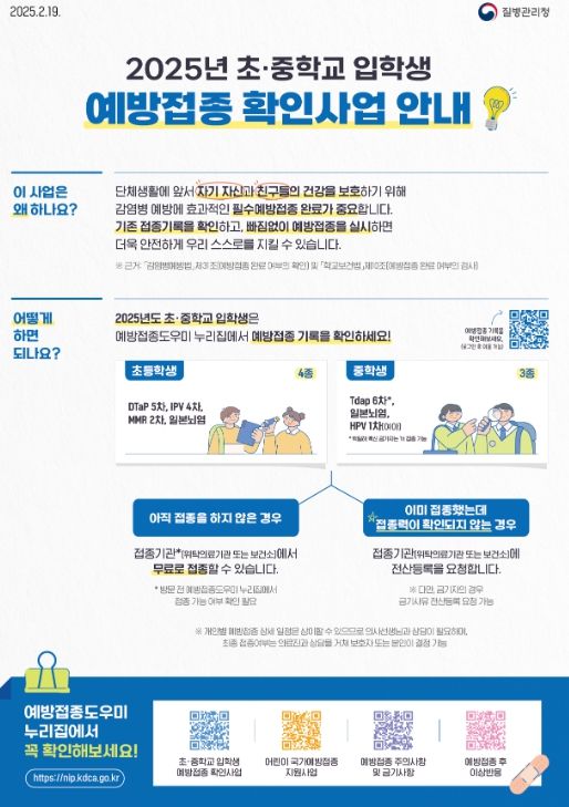 사천시보건소 관계자는 “예방접종은 학생들의 건강을 지키고 집단 면역을 형성하는 데 중요한 역할을 한다”며 입학생들의 예방접종이 누락되지 않도록 철저히 점검하고, 빠르게 접종을 완료할 수 있도록 지원할 것”이라고 밝혔다.