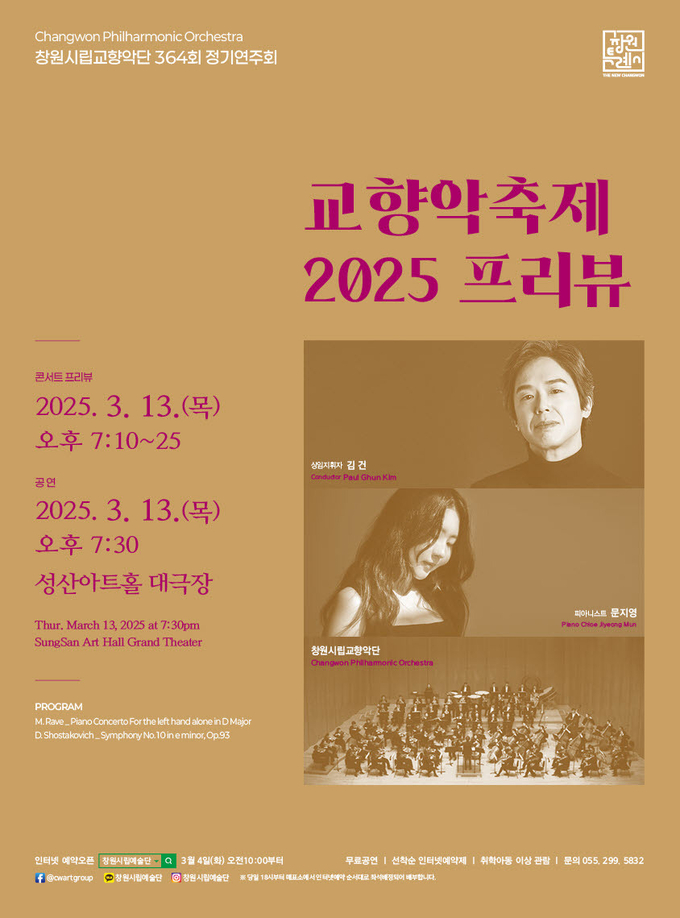 또한 이 공연은 다가오는 4월 1일(화) 서울 예술의전당에서 개최되는 ‘2025 교향악 축제’에 창원시향이 개막공연으로 연주할 프로그램을 미리 만나볼 수 있는 사전 공연이기도 하다.