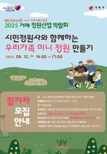 [경남도민뉴스=김부경 기자] 거제시는‘2025 거제 정원산업박람회’가 열리는 거제시 농업개발원 일원에 시민정원사와 함께하는 우리가족 미니정원 만들기 참가자를 모집한다.