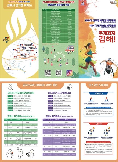 주 개최지인 김해에서는 장애학생체전 8개 종목(8개 경기장), 소년체전 9개 종목(12개 경기장) 경기가 개최된다.