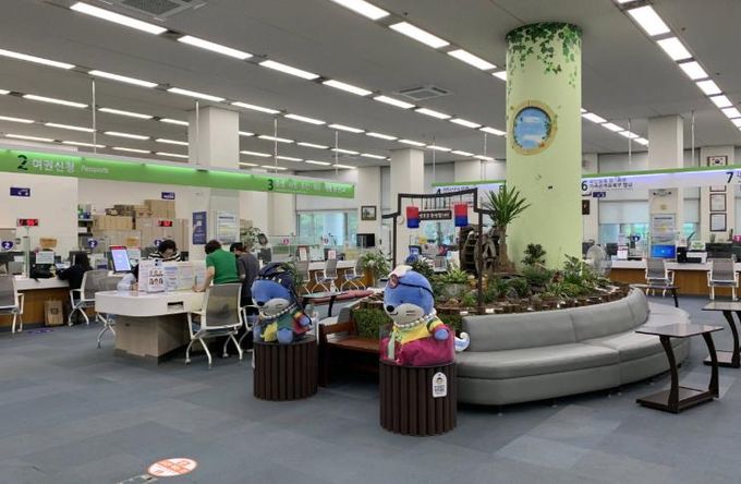 먼저, 기존 동 행정복지센터에 설치된 아크릴 안전 가림막을 강화유리로 교체한다.