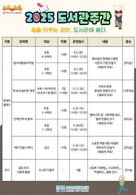 [경남도민뉴스=변정형 기자] 사천시립도서관은 2025년 4월, 도서관 주간을 기념하여 다양한 독서 관련 프로그램을 운영한다.