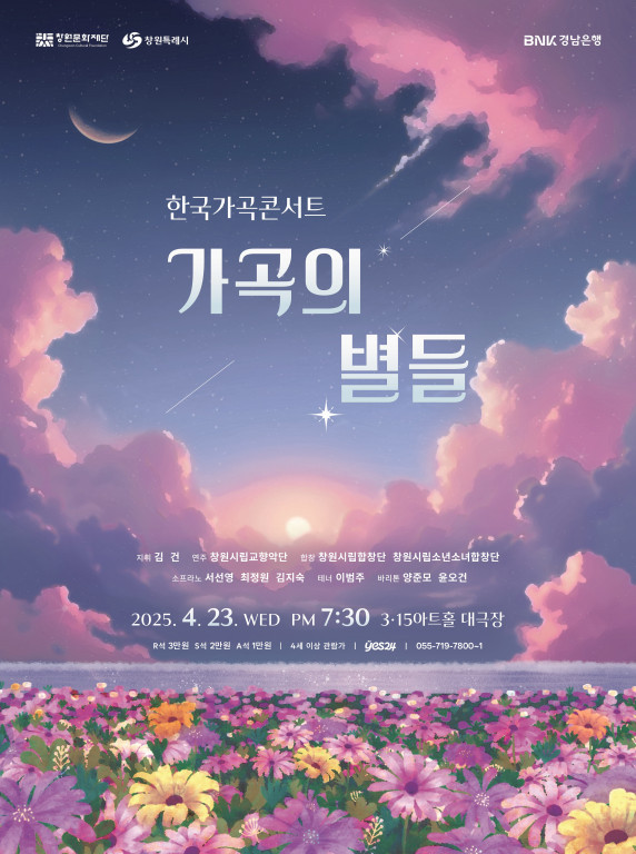 4월 23일 3·15아트홀 대극장에서 2025 한국가곡콘서트 '가곡의 별들'을 선보인다. 이번 공연은 한국 가곡의 역사에서 빼놓을 수 없는 우리 지역 마산과 가곡의 흐름을 조망하고, 시대를 초월해 사랑받아온 명곡들을 한자리에서 만날 수 있는 뜻깊은 시간으로 꾸며진다.