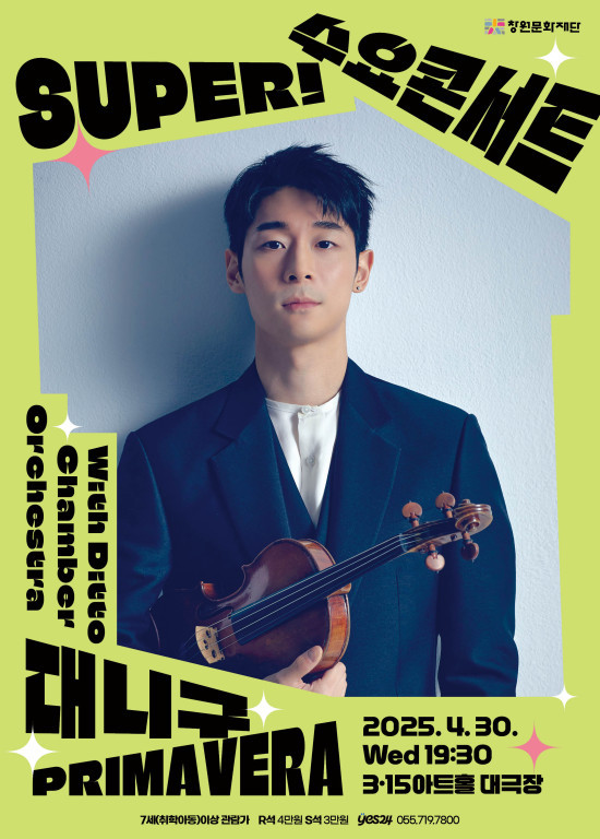 SUPER! 수요콘서트는 격월 마지막 주 수요일마다 다양한 음악 장르를 선보이는 정기 시리즈 공연이다. 클래식, 밴드, 전통, 재즈 등 폭넓은 장르를 아우르는 이번 시리즈는 창원 시민들에게 다채로운 음악적 경험을 제공하기 위해 마련됐다.