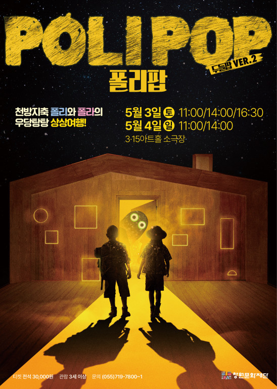 세계로 뻗어나가는 매직 드로잉 가족극 ‘폴리팝’은 주인공 폴리와 폴라의 케미가 돋보이는 작품이다. 프로젝션 매핑(평면·입체 스크린에 3D 영상을 투영) 기술을 이용하여 집과 사막, 정글, 우주로 무한 변신하는 무대와 악사들의 라이브 연주, 배우들의 연기가 어우러져 무대에서 눈을 뗄 수 없게 한다. 아이들의 호기심과 창의력을 자극하는 동시에 가족 모두 함께 즐길 수 있도록 준비한 가정의 달 시즌 공연으로 5월 3일에서 4일까지 양일간 3·15아트홀 대극장에서 만나볼 수 있다.
