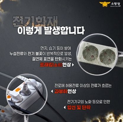 특히 전기화재의 주요 원인인 ▲ 문어발식 콘센트 사용 금지 ▲ 전기배선 정기 점검 ▲ 젖은 손으로 콘센트 만지지 않기 등의 관리가 중요합니다.