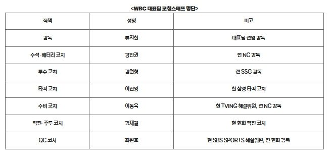 [경남도민뉴스=백형찬 기자] 2026년 3월 개최되는 2026 WBC에서 류지현 감독을 보좌할 대표팀 코칭스태프의 명단이 확정됐다.