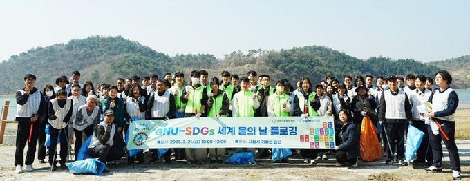 [경남도민뉴스=권중환 기자] 경상국립대학교 지속가능발전센터는 3월 21일 사천시 가화천 일대에서 ‘GNU-SDGs 세계 물의 날 플로깅’을 개최했다. 이날 행사에는 경상국립대 재학생을 비롯해 BAT코리아제조, 한국수자원공사, 사천시 상공회의소, 사천지체장애인협회, 사천환경보호연합 등 여러 기관이 참여했다.