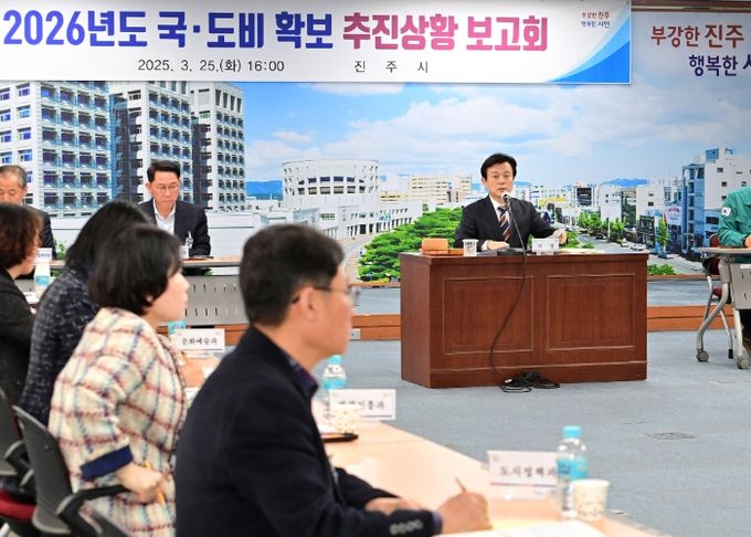 [경남도민뉴스=권중환 기자] 진주시는 25일 조규일 시장 주재로 국·과장 등 간부 공무원이 참석한 가운데 ‘2026년도 국·도비 확보를 위한 추진상황 보고회’를 개최했다.
