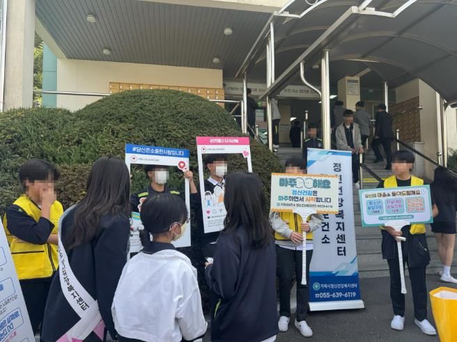 [경남도민뉴스=김부경 기자] 거제시보건소 정신건강복지센터는 지난 3월 26일 수요일 거제중학교 전교생을 대상으로 마음공감학교 프로그램의 일환으로 아동·청소년 정신건강 캠페인을 운영했다.
