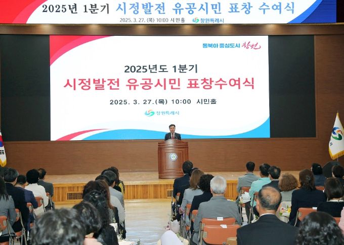 [경남도민뉴스=박민호 기자] 창원특례시는 27일 시청 시민홀에서 ‘2025년도 1분기 시정발전 유공시민 표창 수여식’을 개최했다.