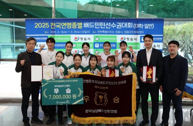 [경남도민뉴스=최민숙 기자] 김천시청 배드민턴단은 지난 3월 22일부터 29일까지 8일간 정읍시에서 펼쳐진 '2025 전국연맹종별 배드민턴선수권대회'에서 금메달 2개를 획득하며 대한민국 최정상의 배드민턴팀을 입증했다.