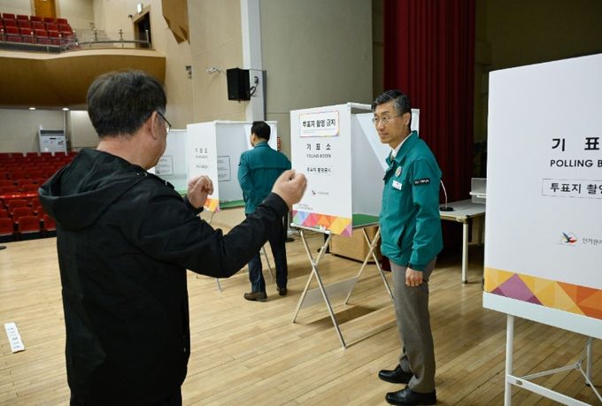 정석원 거제시장 권한대행은 관계자들과 함께 고현동․일운면․장승포동 투표소를 차례로 방문해 △투표소 설치 적정 여부, △불법카메라 설치 여부 등 보안 상태, △소방․안전․전기 분야 조치 사항 등을 살폈다.