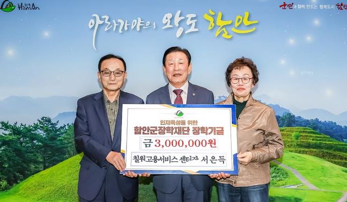 [경남도민뉴스=권중환 기자] 서은득 칠원 고용서비스 센터장은 지난 2일 함안군장학재단을 방문해 지역인재 육성을 위한 장학기금 300만 원을 기탁했다.