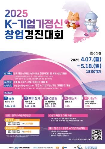[경남도민뉴스=권중환 기자] 대한민국 기업가정신 수도 진주에서 '2025 K-기업가정신 창업경진대회'가 개최된다.