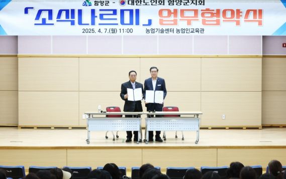 [경남도민뉴스=장광동 기자] 함양군은 4월 7일 오전 11시, 함양군농업기술센터에서 대한노인회 함양군지회(회장 이영일)와 함께 ‘소식나르미’ 사업 추진을 위한 업무협약을 체결했다.