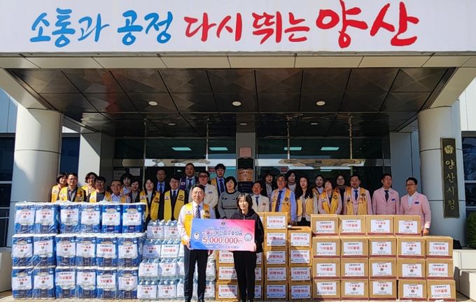 [경남도민뉴스=최미정 기자] 양산시는 국제라이온스협회 355-d(울산·양산)지구에서 지난 8일 사회복지법인 성요셉의집(대표 김희정)에 산불피해 지원을 위한 물티슈, 라면, 생수, 휴지 등 500만원 상당의 물품을 기부했다고 밝혔다.