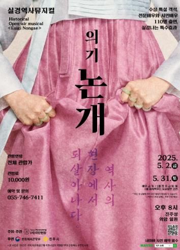 진주시와 문화체육관광부가 후원하고 (사)극단현장이 주최·주관하는 실경역사뮤지컬 ‘의기논개’는 2025년 지역대표예술단체 지원사업으로 선정되어 총 10회 공연으로 확대 편성됐다.