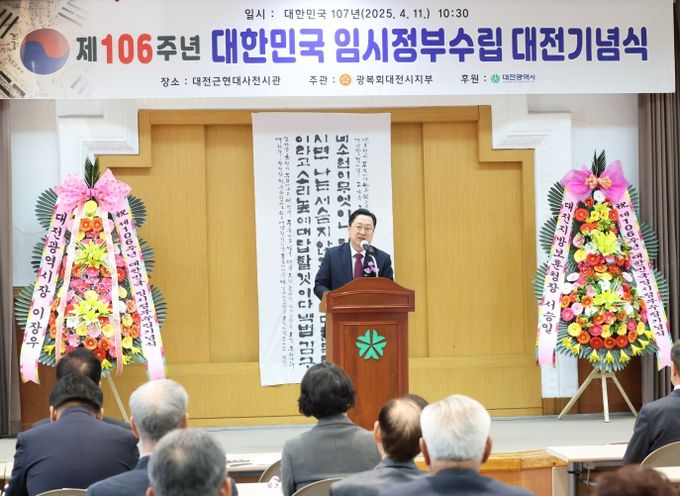 이장우 시장은 이날, “106년 전 나라 잃은 절망 속에서도 희망의 불씨를 지핀 임시정부출범은 오늘 대한민국을 만든 위대한 용기의 역사였다”라며, “목숨을 걸고 조국의 미래를 선택한 선열들의 결단과 희생 앞에 머리 숙인다”라고 말했다.
