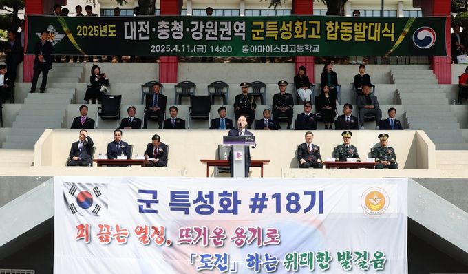 [경남도민뉴스=도문호 기자] 대전시교육청은 4월 11일 동아마이스터고에서 군(軍) 특성화 과정 학생들의 자긍심을 함양하고 군(軍) 특성화 교육에 대한 학교의 결의를 다짐하고자‘2025년도 대전·충청·강원 권역 군(軍)특성화고 합동발대식’을 개최했다고 밝혔다.