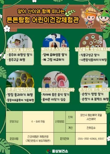 [경남도민뉴스=최미정 기자] 양산시 웅상보건소는 미취학 어린이 등의 건강증진을 위해 어린이 건강체험관을 운영한다고 밝혔다.