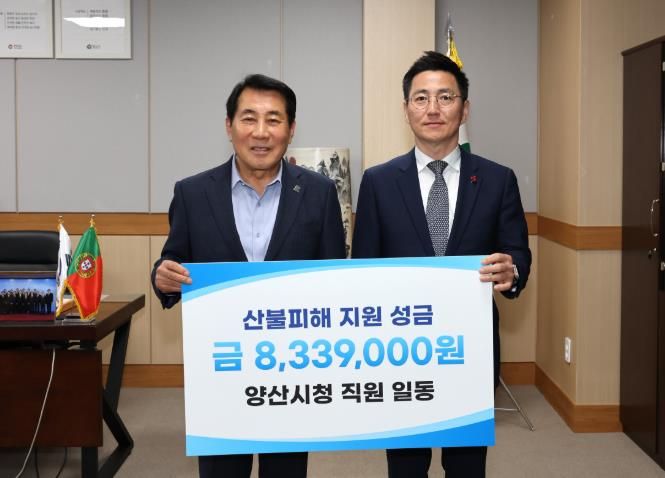 이번 모금은 양산시장을 비롯한 1,300여명의 양산시청 직원이 자발적으로 동참해 모은 것으로, 올해 3~4월 경남·경북·울산 지역에서 발생한 대규모 산불로 피해를 입은 이재민을 지원하고 신속한 복구를 돕기 위해 마련됐다.