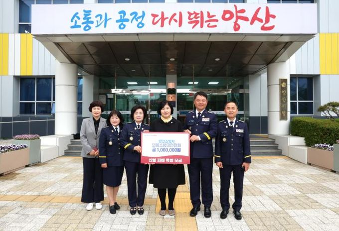 [경남도민뉴스=최미정 기자] 양산소방서 의용소방대연합회는 17일 양산시청을 방문해 경남사회복지공동모금회에 100만원을 기부했다.