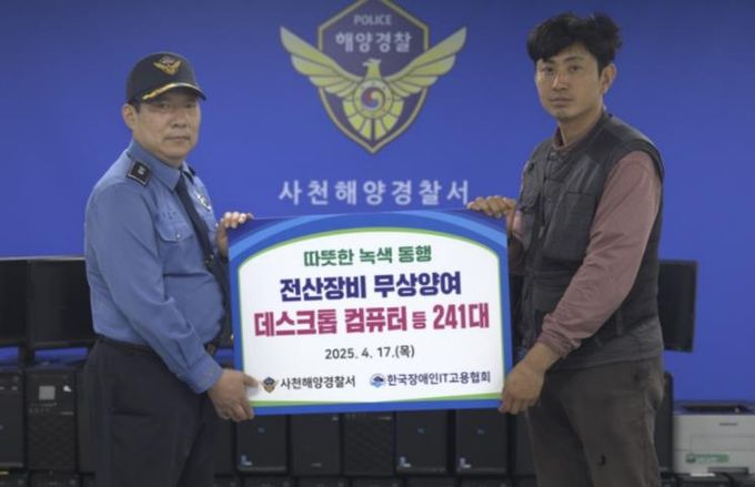 [경남도민뉴스=변정형 기자] 사천해양경찰서는 사용 연한이 지난 전산물품 중, 활용이 가능한 241점을 선별해 환경분야 규제혁신으로 사단법인 한국장애인IT고용협회에 무상 양여했다고 18일 밝혔다.