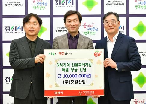 조현일 경산시장은“중원산업의 따뜻한 나눔에 감사드리며 기탁하신 성금은 피해 주민들이 하루빨리 일상으로 돌아갈 수 있도록 소중히 사용 될 것이며 신속하게 경북사회복지공동모금회에 잘 전달하겠다”고 답했다.