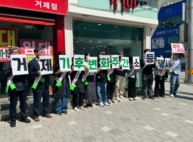 기후변화주간의 시작을 알리며, 지난 21일에는 고현사거리 일원에서 거리 캠페인을 펼쳤다.