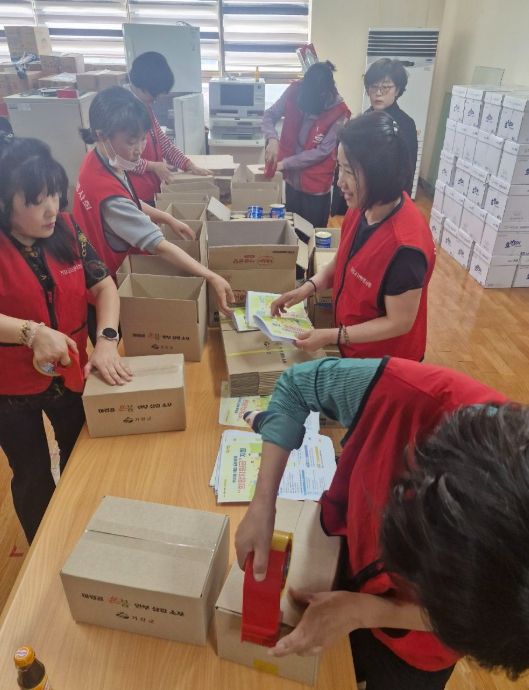 사업의 원활한 진행을 위해 거창읍 자원봉사회가 복지 소포 포장 봉사에 참여하며, 42명의 집배원이 가정을 방문해 복지 물품을 전달하고 안부를 살피고 있다.