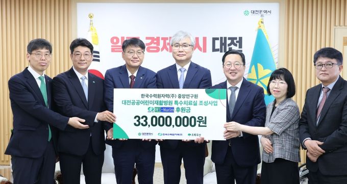 이날 기탁식에는 이장우 대전시장을 비롯해 신호철 한국수력원자력(주) 중앙연구원장, 최승인 초록우산어린이재단 대전지역본부장, 양신승 대전세종충남・넥슨후원 공공어린이재활병원장, 조강희 충남대학교병원장이 참석했다.